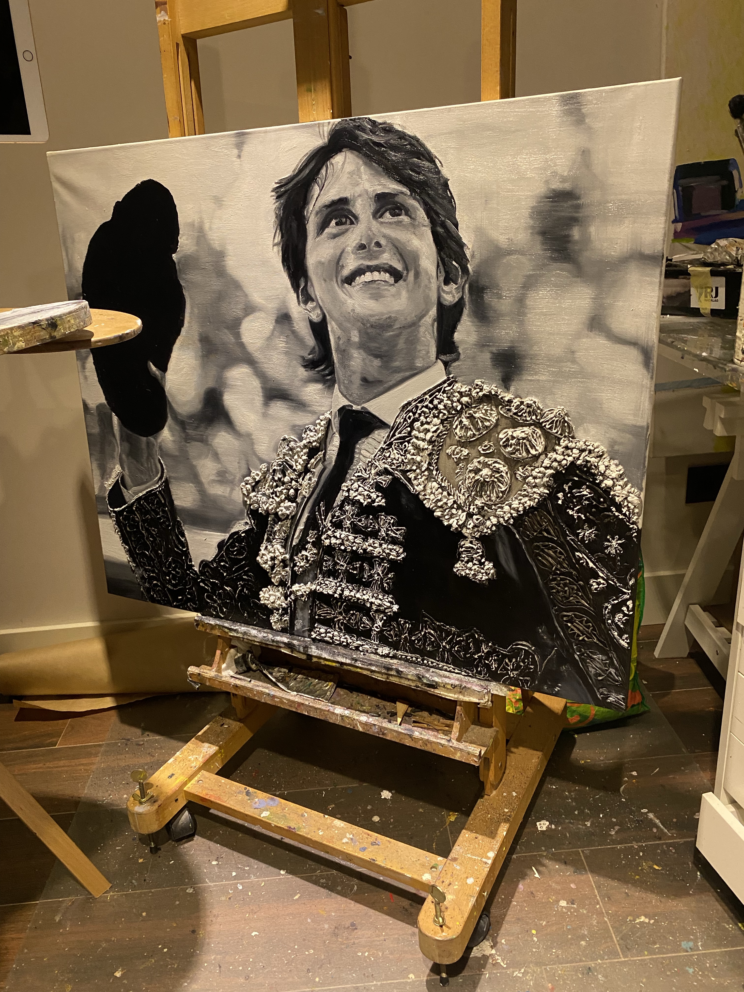 Roca Rey proceso óleo y acrílico sobre lienzo